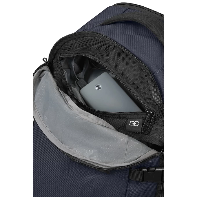Deze laptop rugzak van Samsonite is een tas die voorzien is van een 17,3″ laptopvak. Om er zeker van te zijn dat je laptop past in deze Samsonite Ecodiver tas is het aan te bevelen om de buitenafmetingen van je laptop even op te meten en deze naast de buitenafmetingen van deze tas (H 54 x B 34 x D 26) te leggen. Als je zeker wilt weten dat je laptop past, dan dient de buitenafmeting van je laptop kleiner te zijn dan deze laptop rugzak. Op deze tas 2 jaar garantie. Het belangrijkste element van een laptoptas is toch wel het laptopvak. Dit vak zorgt ervoor dat jij jouw laptop veilig kan vervoeren. Zo kan jij je laptop zonder zorgen overal mee naar toe nemen. In deze tas is er niet alleen een vak gemaakt om jouw laptop veilig in op te bergen, er is ook een vak voor je tablet. Dit tabletvak biedt bescherming tegen spullen in jouw tas met scherpe randen en punten, maar zorgt er ook voor dat de tablet goed op z’n plek blijft zitten tijdens de reis. Deze tas van is voorzien van een telefoonvakje waar jij je telefoon in kunt opbergen. Een telefoonvak voorkomt dan ook dat jij je hele tas overhoop moet halen om je telefoon te zoeken. Een ander groot voordeel van een telefoonvak is dat het je telefoon beschermd. Is jouw telefoon bijna leeg en ben je onderweg? Geen zorgen, met deze laptoptas kan jij jouw telefoon opladen.